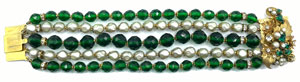 At first glance many of Robert De Mario’s faux pearl designs look much like the work of Miriam Haskell, Eugene and Robért with lovely gold tone filigree. DeMario jewelry is very beautiful and well collected today.