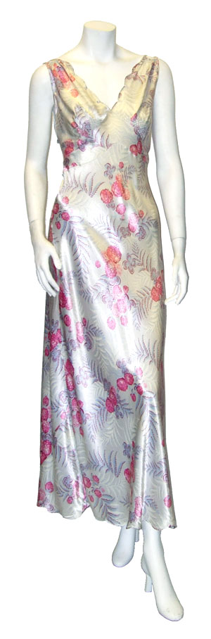 Lovely 1930's /40's floral bias cut floral silky rayon satin nightgown.