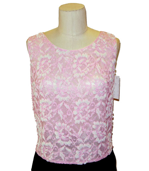 Adorable 1960's pink lace top with white glass beads.